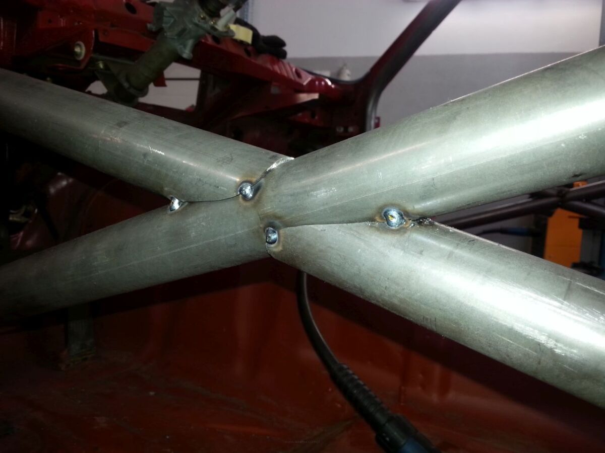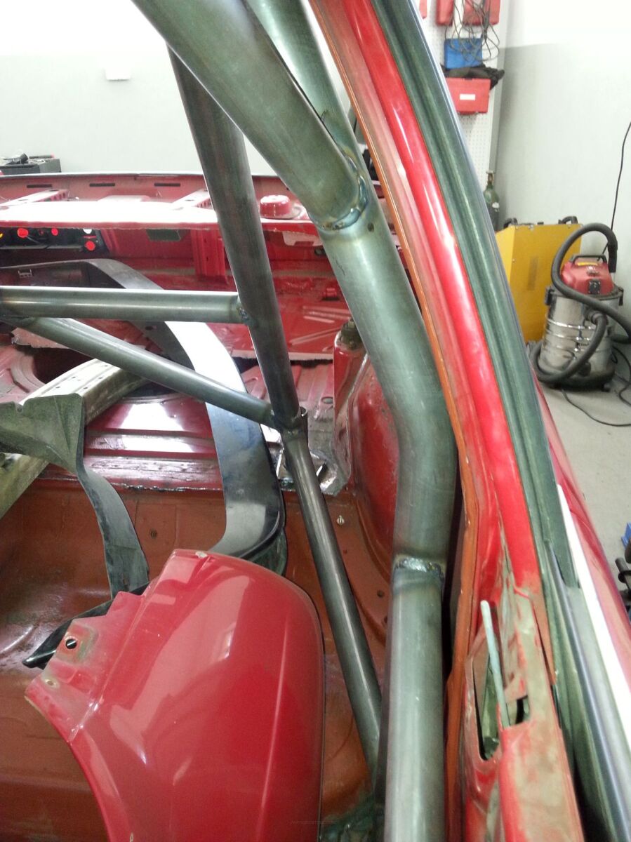 Zgodnie z załącznikiem wzmocnienia drzwi mogą być wykonywane na wiele sposobów, dotychczas jednak regulaminy serii driftingowych wymagały bezwzględnie krzyża w drzwiach zwłaszcza jeśli zamiast oryginalnych metalowych drzwi zastosowane były drzwi z kompozytów. Obecnie regulamin Drift Masters dopuszcza inne warianty zgodne z załącznikiem J art. 253 przepisów FIA. Z uwagi na pozostałe serie pozostaliśmy przy krzyżu dodatkowo wzmocnionym węzłówkami. Krzyż umiejscowiony jest maksymalnie blisko drzwi podobnie jak pałąk główny.