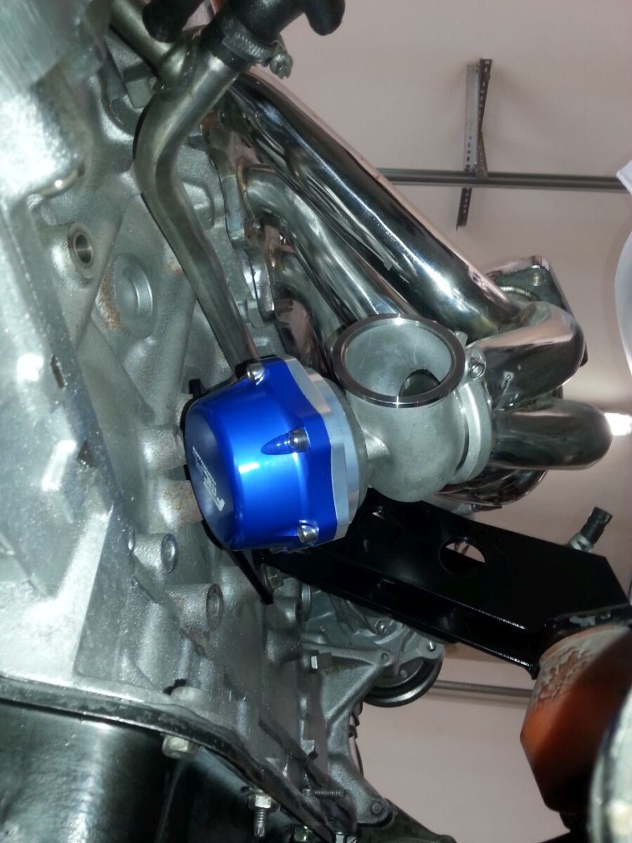 W kolejnym etapie dopasowaliśmy kolektor wydechowy do głowicy, niestety produkt importowany prosto z USA zostawiał wiele do życzenia pod względem dokładności wykonania, do kolektora dopasowaliśmy westgate od FMIC.pl na mocowaniu V-band, turbosprężarkę, oraz wykonaliśmy downpipe.