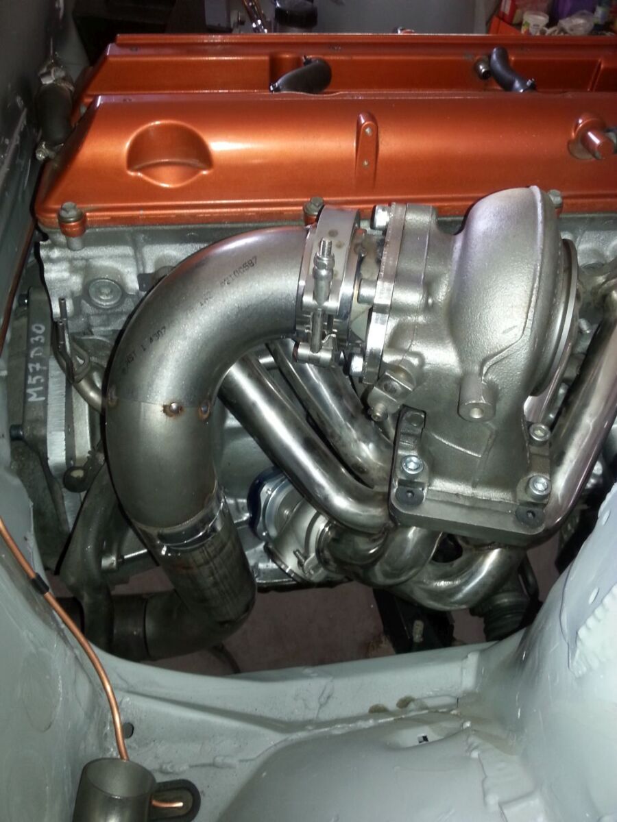 Silnik którym dysponujemy we wcześniejszym wcieleniu naszego BMW jeździł praktycznie bezawaryjnie z mocą 400KM. Zdecydowaliśmy się na kompleksową przebudowę samochodu, także zdecydowaliśmy się na zastąpienie seryjnych turbosprężarek pracujących w układzie sekwencyjnym jedną turbosprężarką typu Twin Scroll Borg Warner. Z pomocą przyszła nam firma PPHU Turbo zajmująca się sprzedażą oraz regeneracją turbosprężarek. Wspólnie wybraliśmy prekursora serii S200 a mianowicie turbosprężarkę B2G. Ze względu na planowany znaczny wzrost mocy dokonaliśmy kompleksowego przeglądu silnika. Oryginalne panewki główne jak i korbowodowe, mimo braku zużycia zastąpiliśmy wyczynowymi panewkami KING RACING, całość skręcona nowymi śrubami ARP 2000.