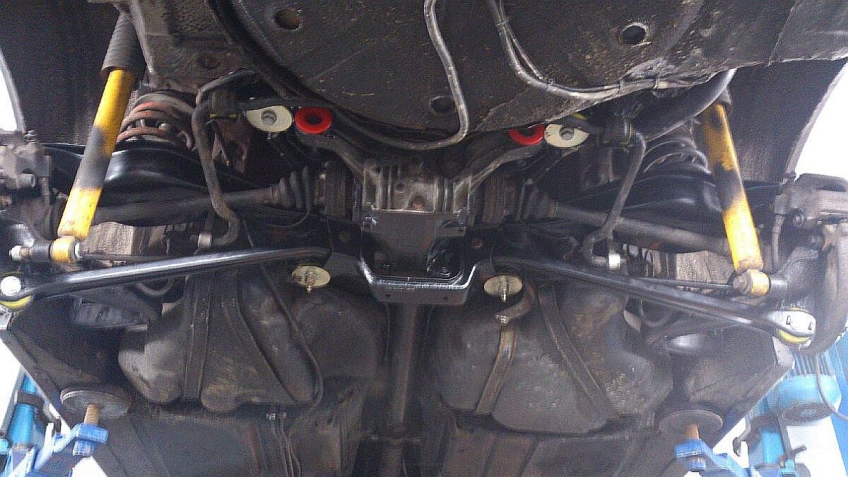 Praktycznie każdy element zawieszenia został zastąpiony nowym odpowiednikiem z poliuretanu. Andrzej zdecydował się na serię żółtą o podwyższonej sztywności. Dyferencjał również zyskał nowe tuleje, drążek reakcyjny nowe łączniki. Dokonaliśmy przeglądu łożysk i wymiany wszystkich zużytych elementów.