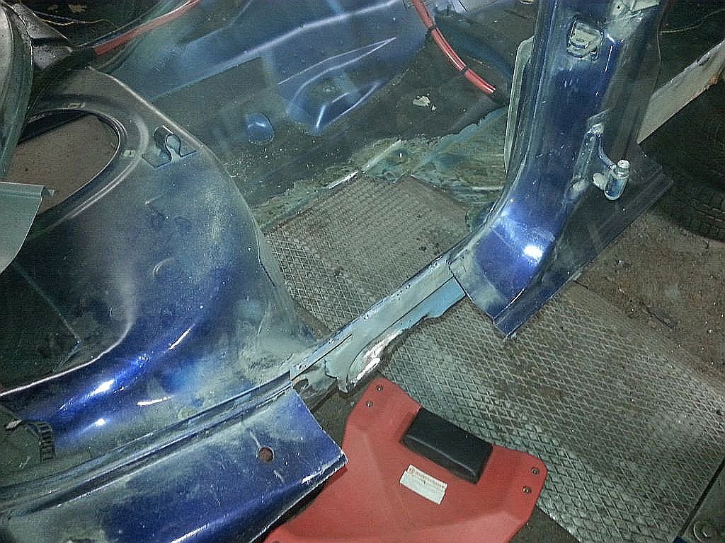 Prac blacharskich w tym przypadku było sporo, musieliśmy zdemontować całe wnętrze samochodu by podczas spawania przypadkowo nic nie spalić. Po demontażu została wycięta praktycznie większość skorodowanej blachy w progach by w jej miejsce dopasować dorobione przez nas kształtki służące do rekonstrukcji elementów nośnych czy mocowań lewarka bez których wymiana koła na drodze jest niemożliwa. W dzisiejszej galerii zamieściliśmy zdjęcia z przygotowania nadwozia do napraw ubytków blacharskich, wymiany progów i reperaturek błotników.