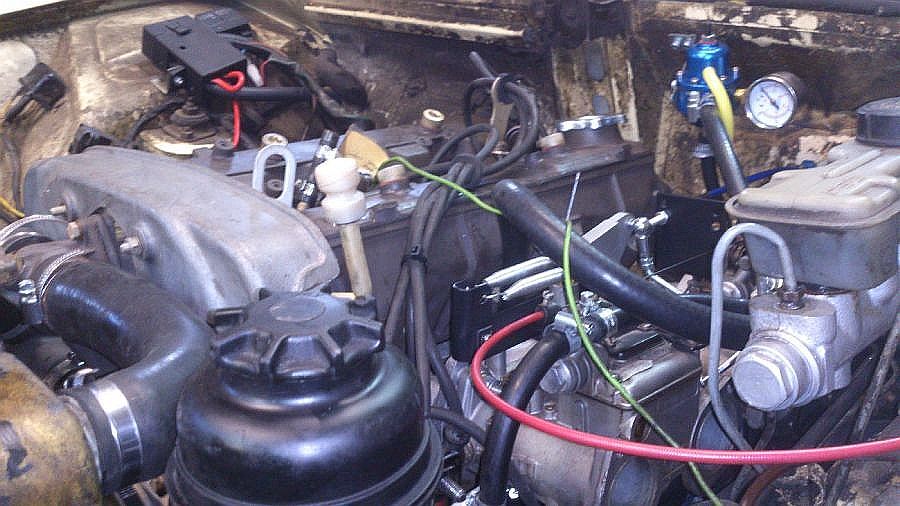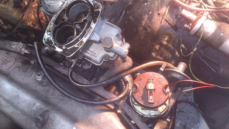 - Fabryczny dość awaryjny układ wtryskowy został zastąpiony dwoma poziomymi gaźnikami Dellorto 40 DHLA które zasila elektryczna pompa paliwa. O właściwe ciśnienie w układzie paliwowym dba podciśnieniowy regulator. Cena gaźników Dellorto obecnie na rynku dochodzi nawet do tysiąca złotych za sztukę. egzemplarze które otrzymaliśmy od właściciela troszkę przeleżały, niestety nie obyło się bez ich kompleksowej regeneracji, głównie przez osad wapienny który skutecznie pozatykał wszelkie możliwe kanały.