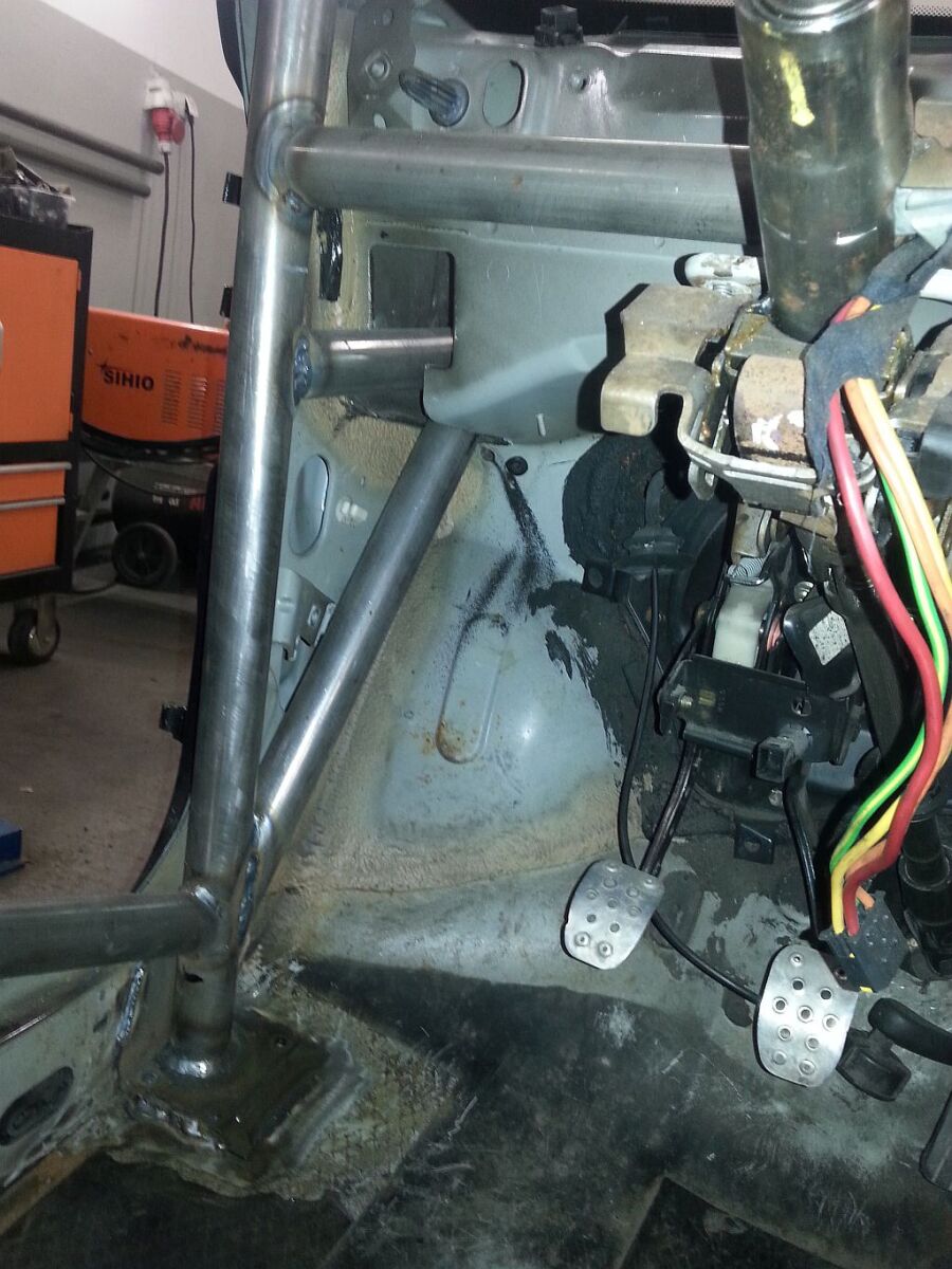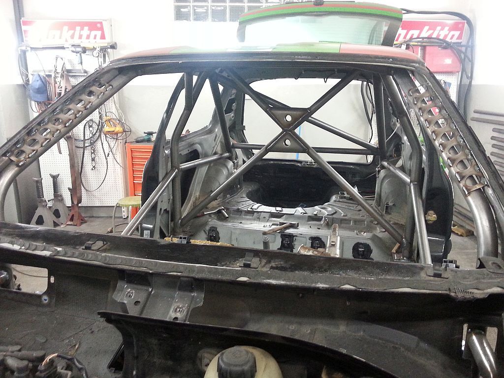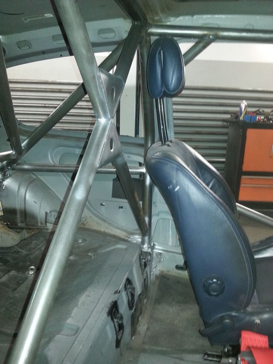 Klatka wyposażona jest w przednie zastrzały przednich kielichów, elementy przekątne wzmocnień drzwi, krzyż za plecami, oraz wzmocnienia tylnych punktów mocowania klatki bezpieczeństwa które wykonaliśmy do górnych mocowań amortyzatorów.