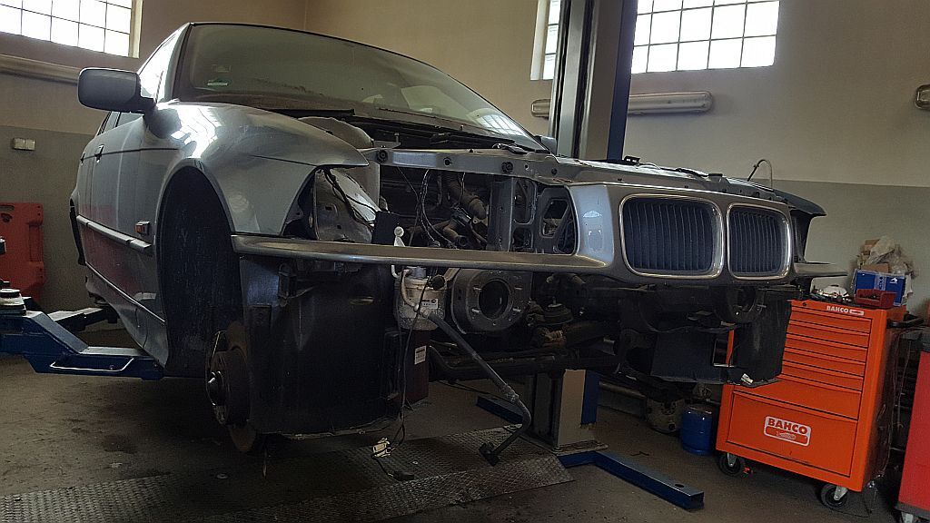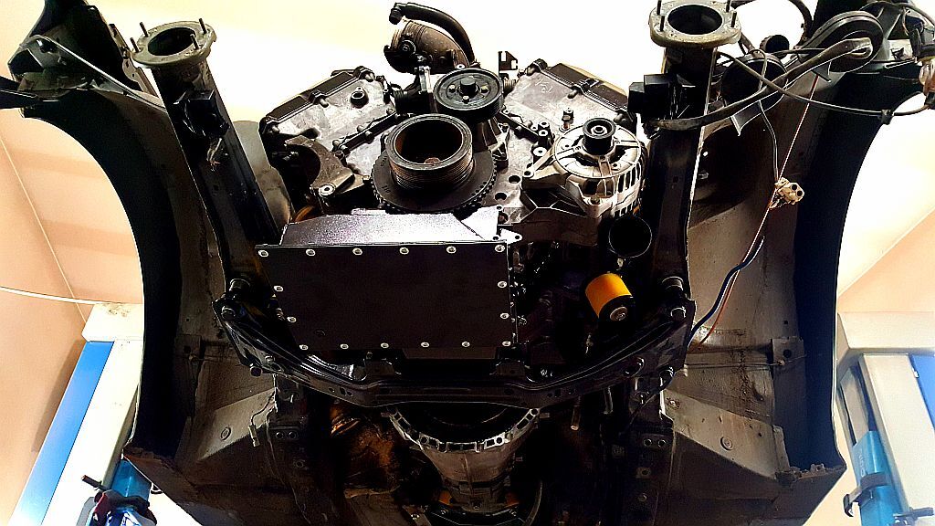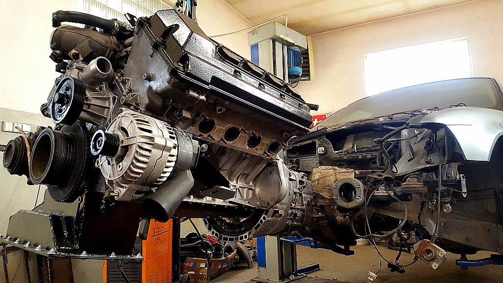 Silnik M60 był standardowo spięty z automatyczną skrzynią, udało się zdobyć zestaw oryginalnej manualnej skrzyni biegów. W końcu po złożeniu zestawu w oparciu o oferowaną przez nas miskę olejową, przyszedł czas na montaż silnika w nadwoziu, podłączeniu wszystkich węży, przeróbce instalacji elektrycznej, zbudowaniu ukłądu wydechowego i rozwiązaniu wielu innych problemów występujących przy takim swapie.