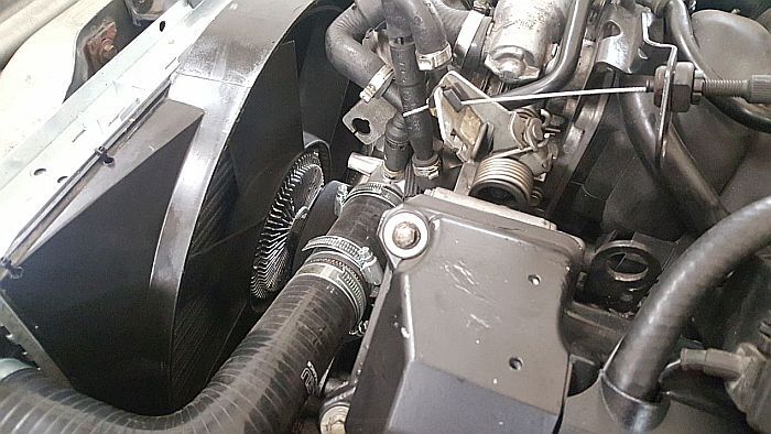 Silnik przy zastosowaniu naszych łap dosunięty jest maksymalnie do grodzi. Dzięki temu możemy zastosować chłodnicę wody w oryginalnym miejscu, chłodzoną wiatrakiem wisko. Takie zestawienie zapewnia optymalne chłodzenie silnika nawet w upalne dni. Warto również pokusić się o zmianę termostatu na wersję z M60.