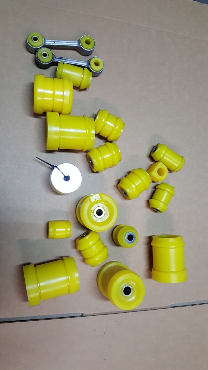 Przednie tuleje gumowe jak i gumy i drążki stabilizatora również zostały zastąpione poliuretanowymi.