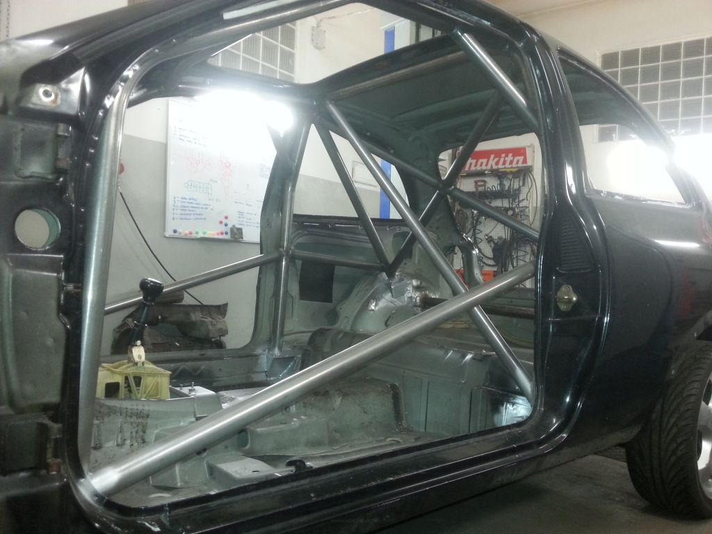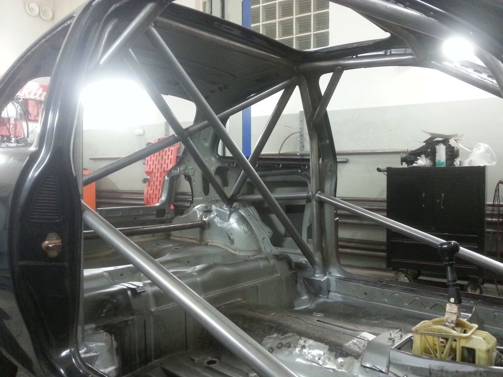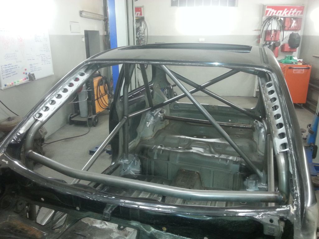 Tym razem zbudowaliśmy klatkę bezpieczeństwa do Opla Corsy B. Podstawowa 6-ścio punktowa klatka bezpieczeństwa została rozbudowana o krzyż na tylnych zastrzałach i element przekątny za plecami. Dodatkowo wspawaliśmy węzłówki wzmacniające przednie słupki. Klatka spełnia wymagania załącznika J przepisów FIA.